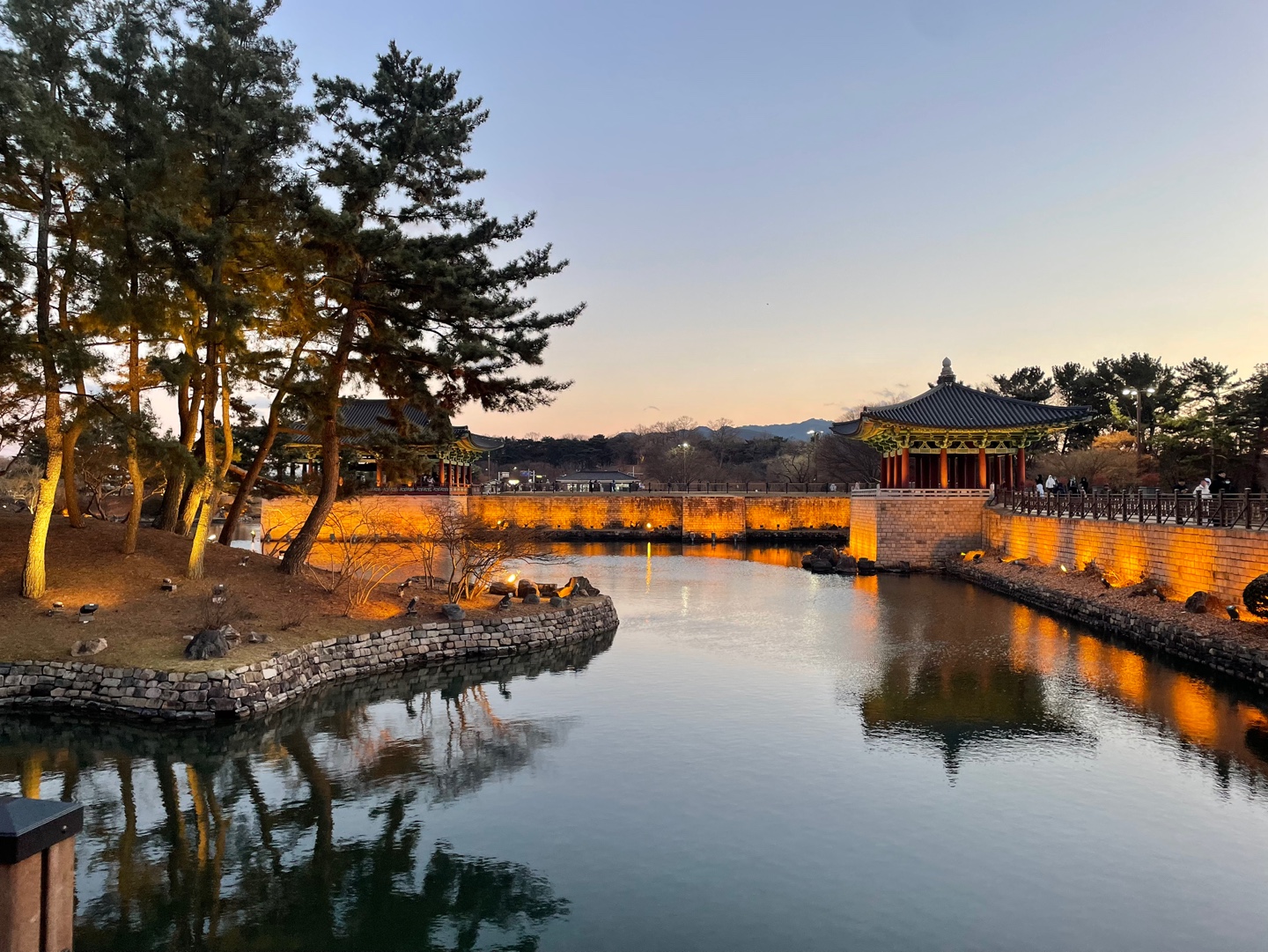 안압지는 경주의 대표적인 야경 명소로 통일신라시대의 궁궐 유적으로 알려져 있습니다.